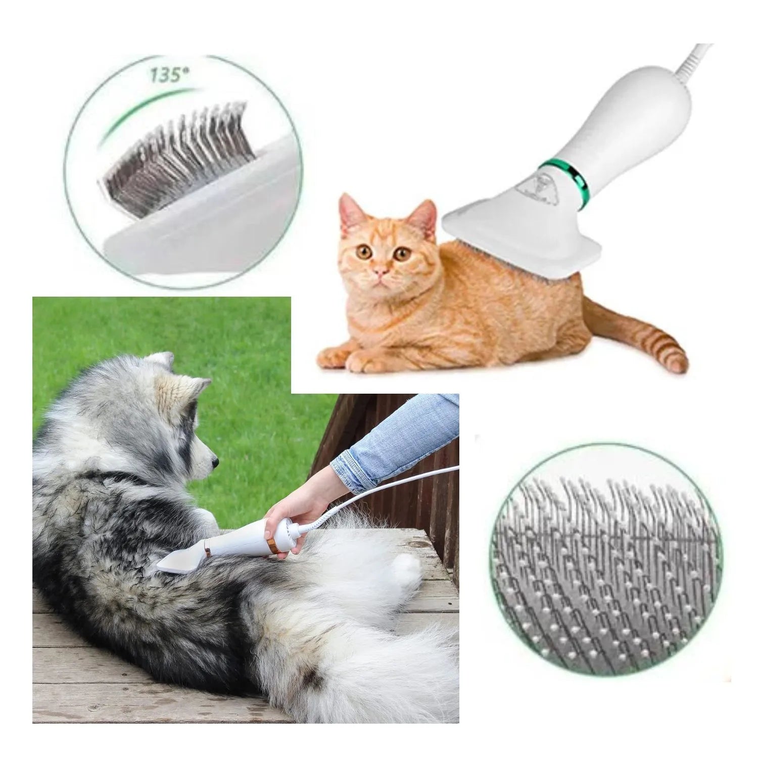 Cepillo Secador 2 en 1 para Mascotas – Secado rápido, suave y silencioso